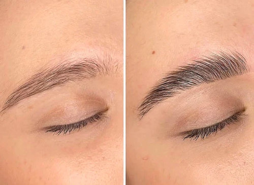 Chemically straightens the hairs in the brows to allow for flexible shaping, with tint. Lasts for 6-8 weeks.